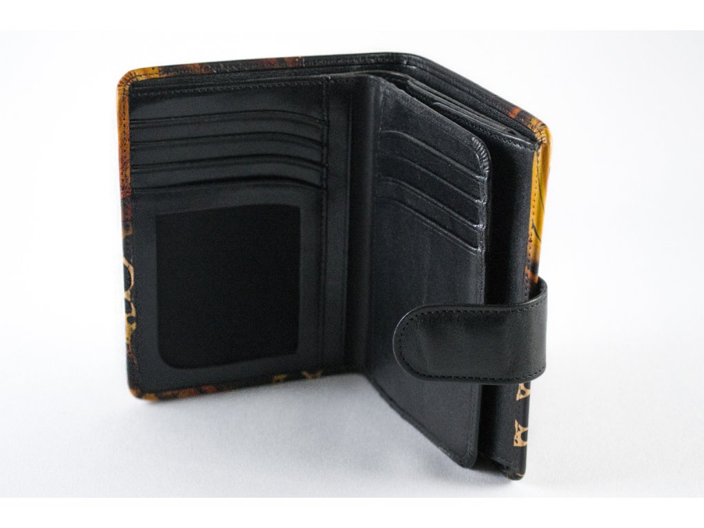 Peněženka umožnuje vložení až 12-ti karet. Dvě přihrádky pro bankovky.Kapsička na drobné uzavíratelná drukem. Celá peněženka je jištěná vrchním přepínacím páskem. Vysoká kvalita zpracování a použitých materiálů.Doplňkové parametry