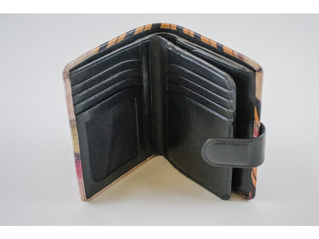 Peněženka umožnuje vložení až 12-ti karet. Dvě přihrádky pro bankovky.Kapsička na drobné uzavíratelná drukem. Celá peněženka je jištěná vrchním přepínacím páskem. Vysoká kvalita zpracování a použitých materiálů.Doplňkové parametry