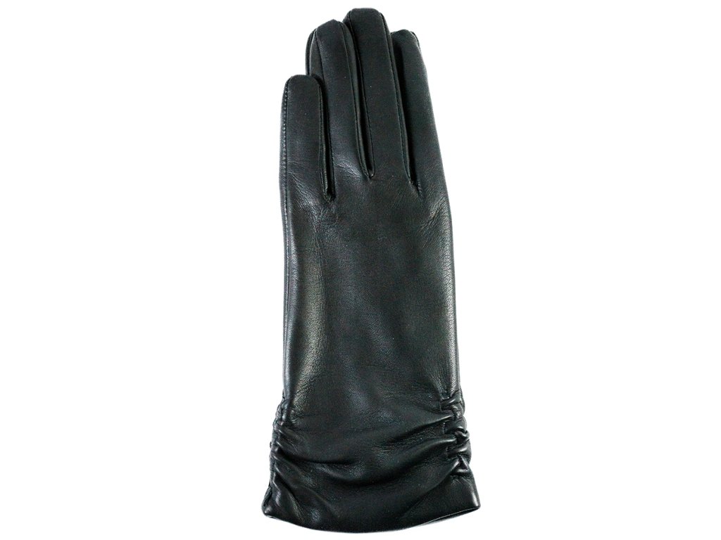 Dámské, kožené rukavice zhotovéné z jehnětiny. Rukavice klasického, prodlouženého střihu. Rukavice jsou zdobeny řasením na zápěstí. Řasení bylo docíleno zapomoci gumičky, která zárověń brání před vniknutím chladu. Rukavice jsou zatepleny příjemnou, vlněnou podšívkou.Doplňkové parametry